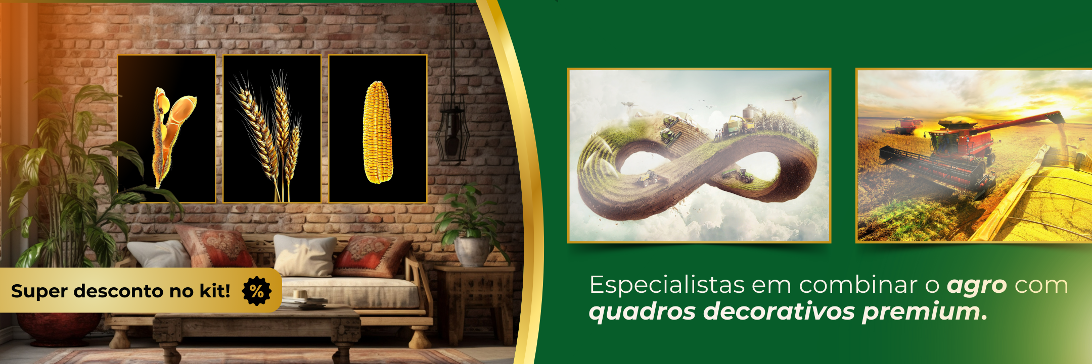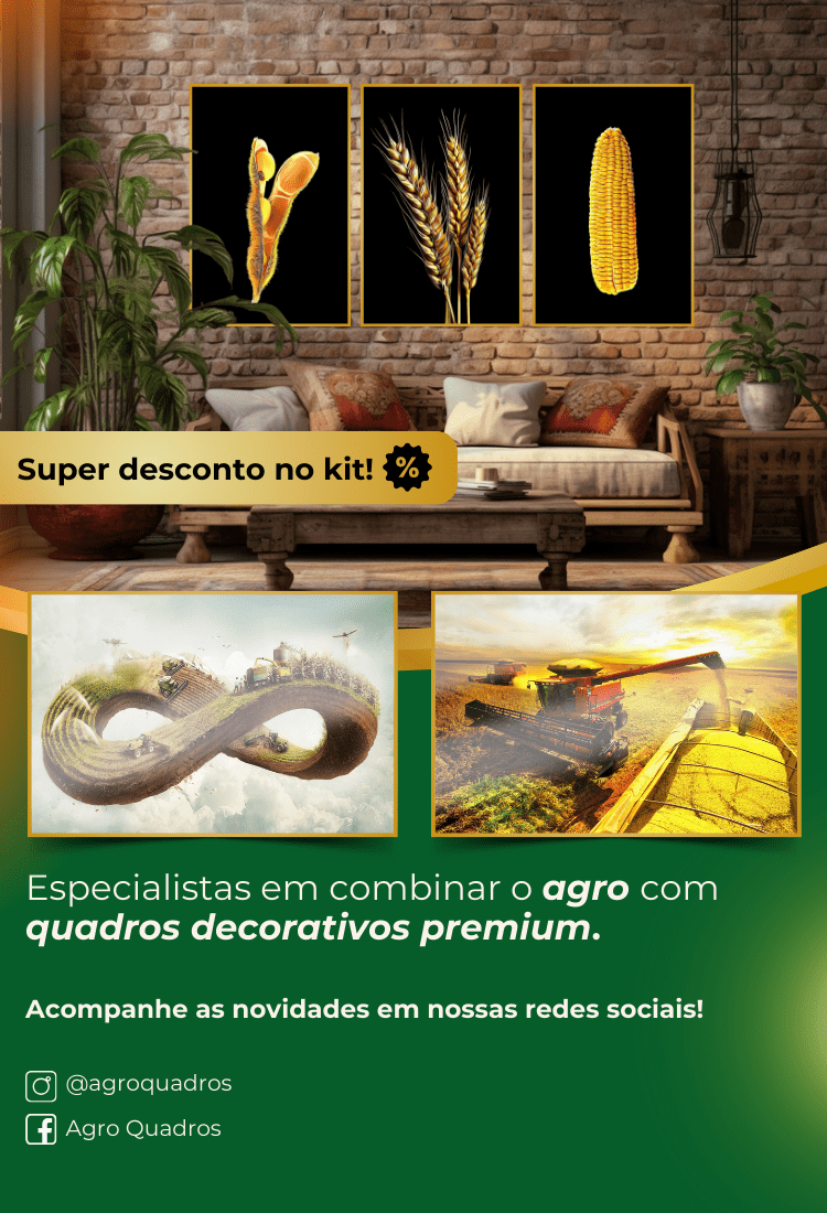 Kit 3 Quadros Algodão, Soja e Milho Fundo Black