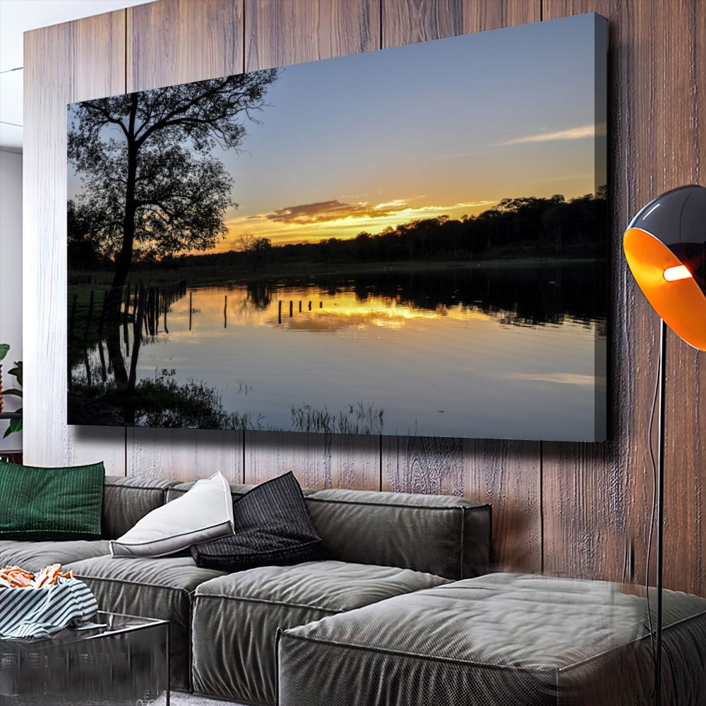 Quadro Açude E Pôr Do Sol Na Fazenda