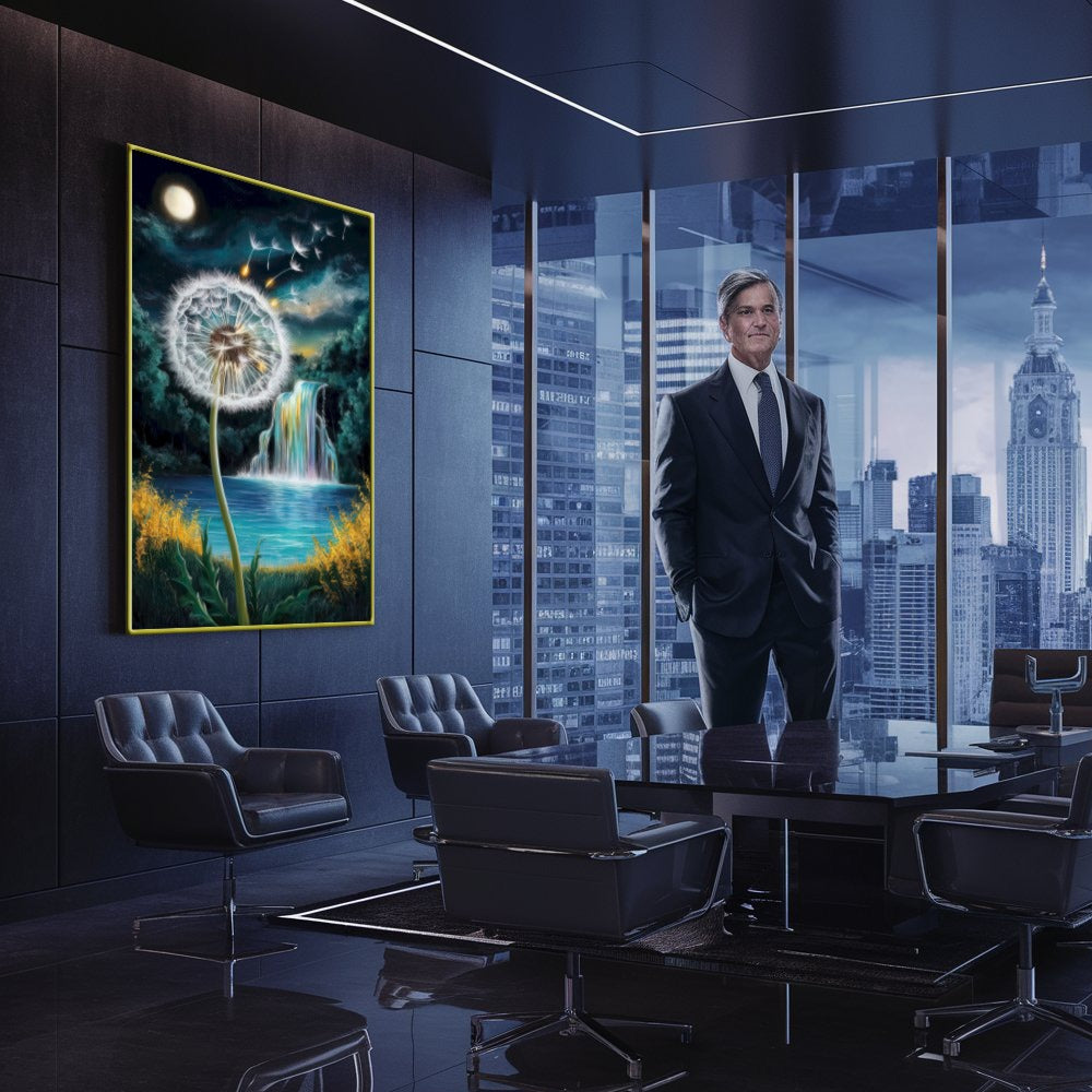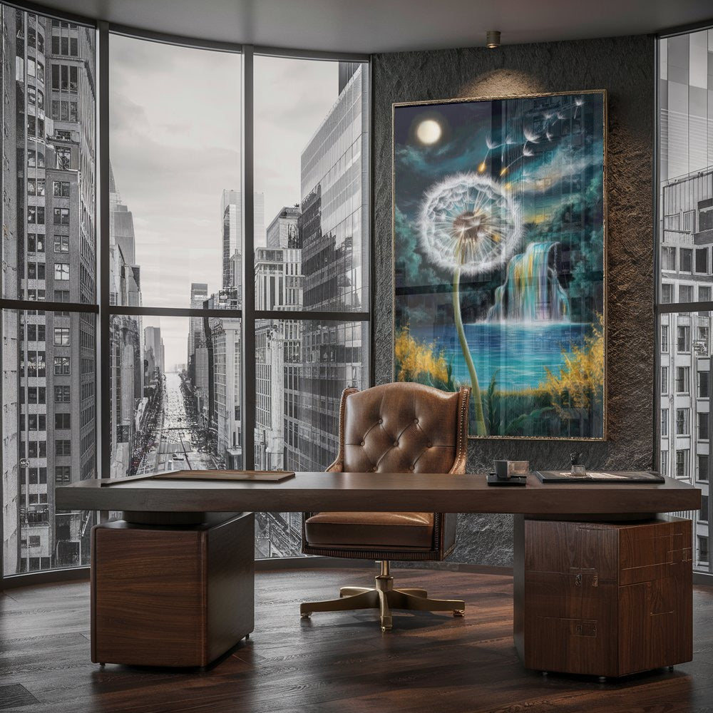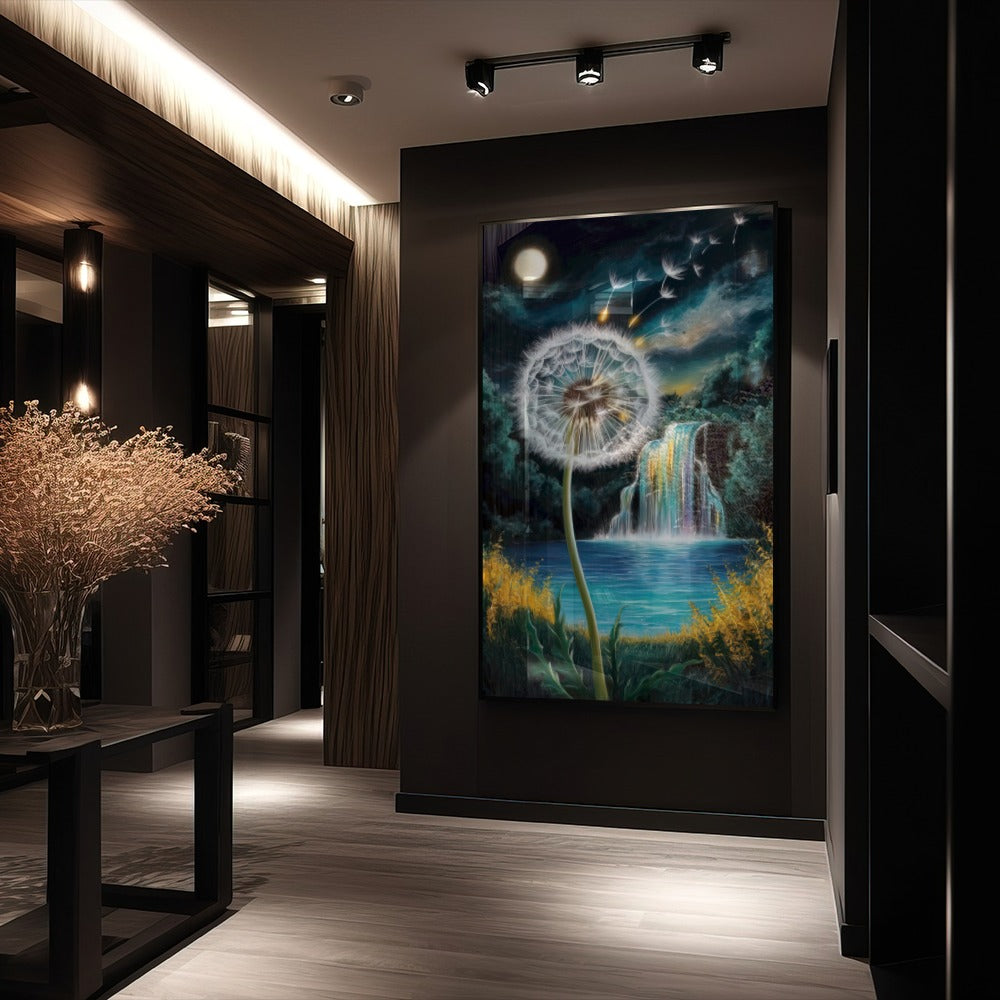 Quadro Dente De Leão E Cachoeira Estilo Pintura