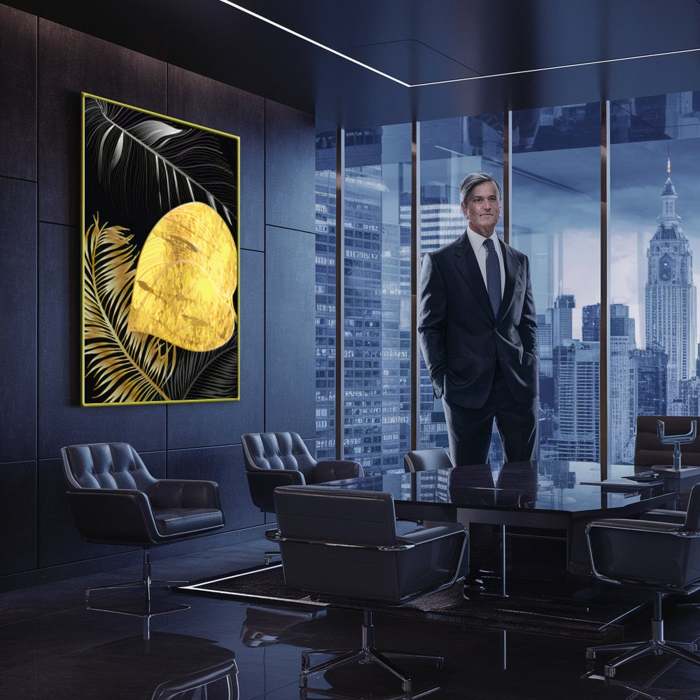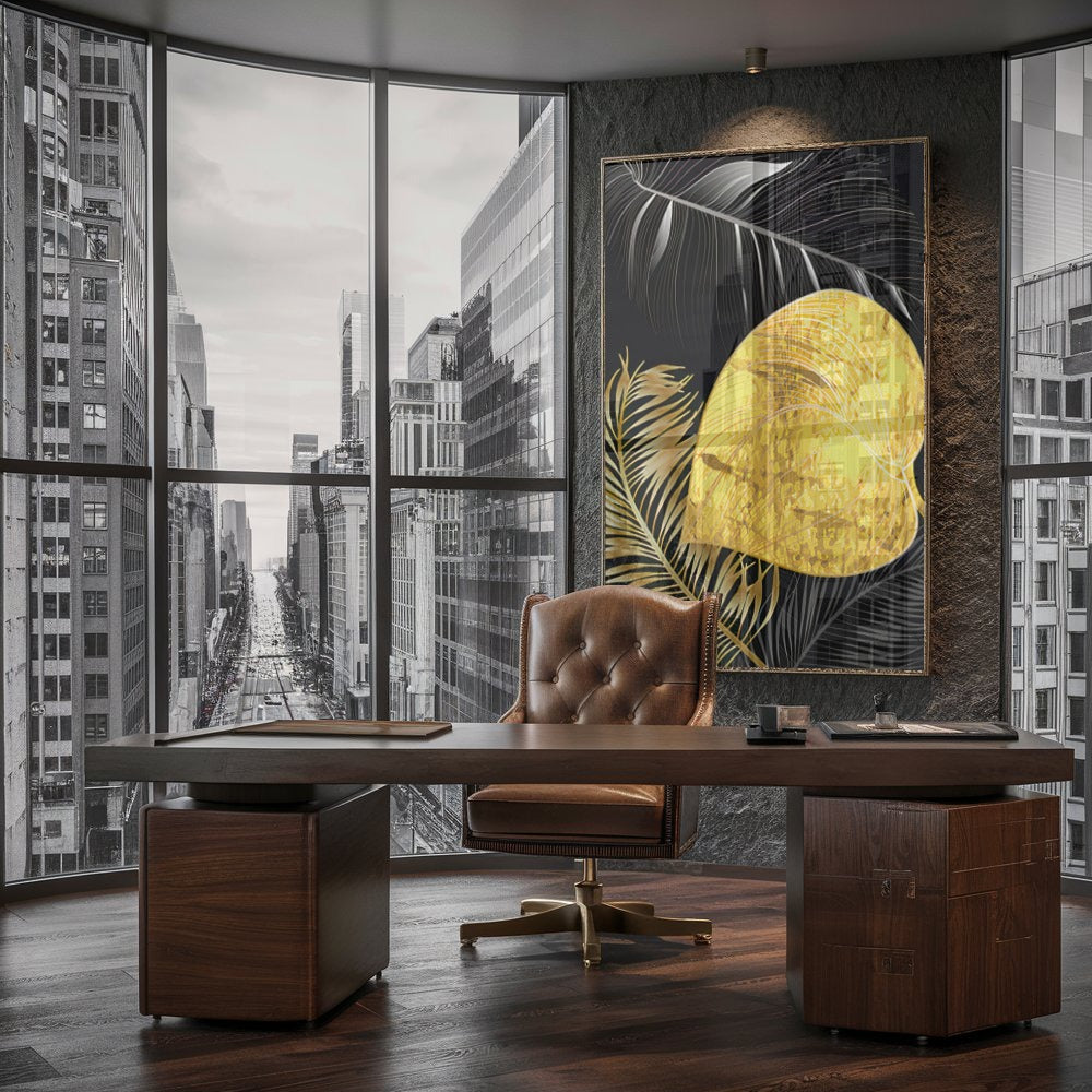 Quadro Folhagem Dourado E Branco Abstratos