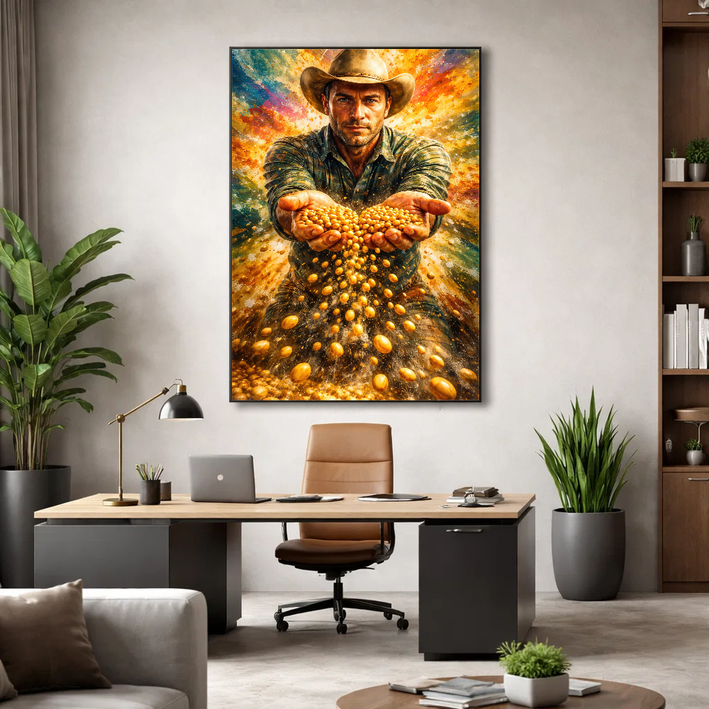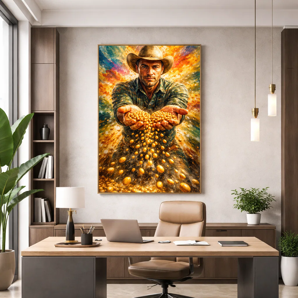 Pensando nisso, a AGRO QUADROS, única marca focada exclusivamente em quadros do Agro negócio do Brasil, homenageando o profissional
