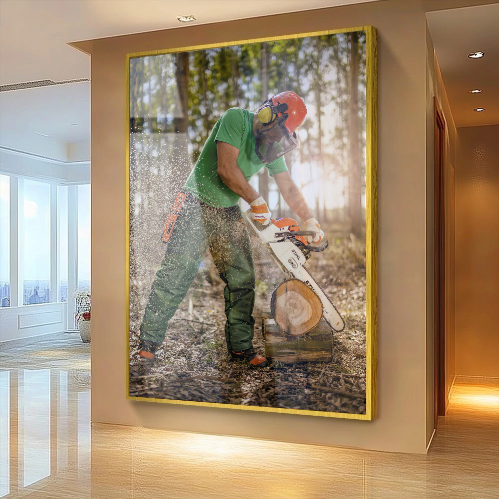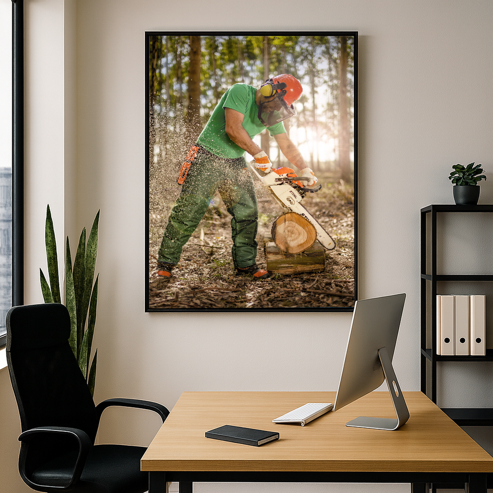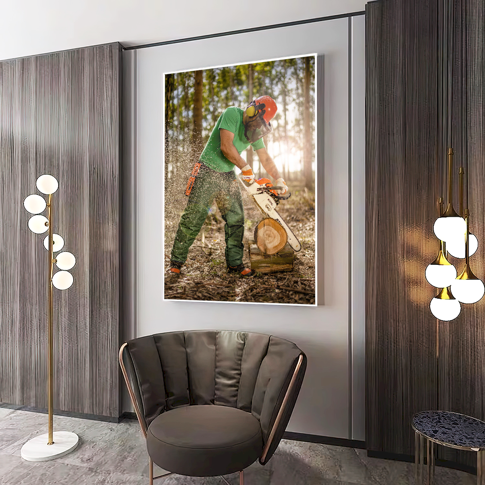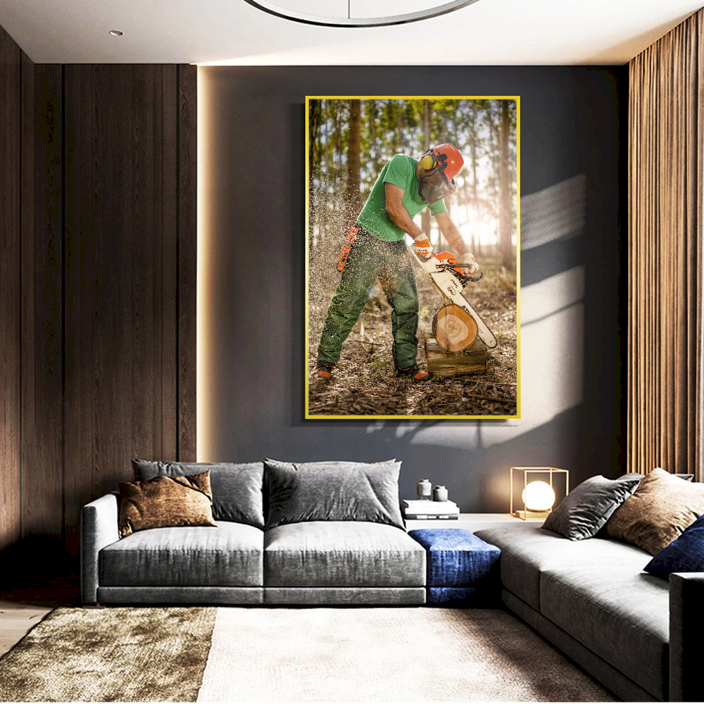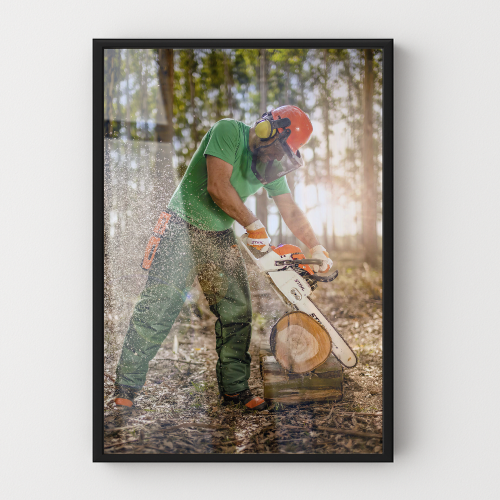 Quadro Serrando Madeira Motosserra